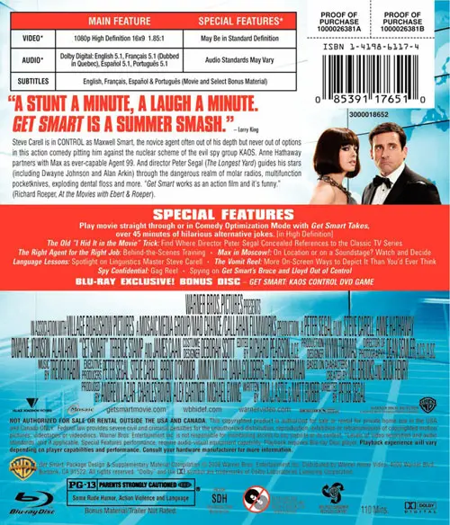 Warner Home Video has released the final disc specs and extra features that will grace the Get Smart Blu-ray Disc release with Steve Carrell and Anne Hathaway on November 4.