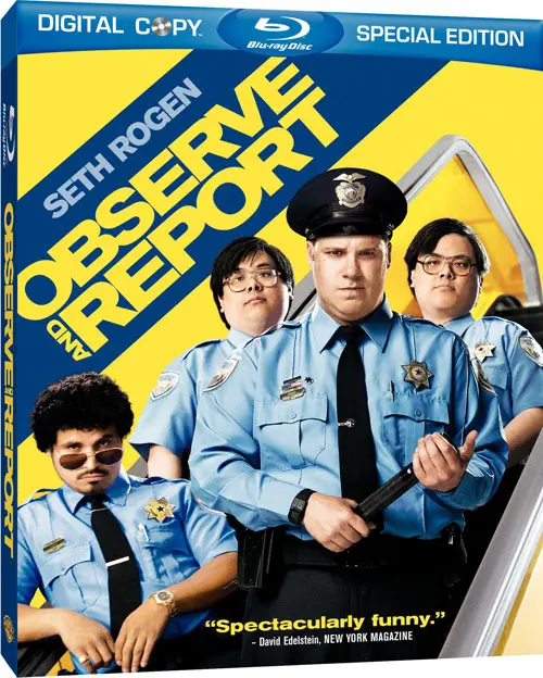 Warner Home Video will counter Paul Blart: Mall Copy and release the Seth Rogen comedy Observe and Report on Blu-ray Disc and DVD on September 22. Co-starring with Rogen are Anna Faris, Michael Peña, Celia Weston, Collette Wolfe and Ray Liotta.