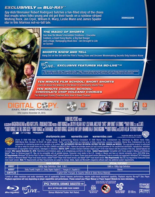 Warner Home Video has announced plans to release Shorts from writer/director Robert Rodriguez on Blu-ray Disc November 24.
