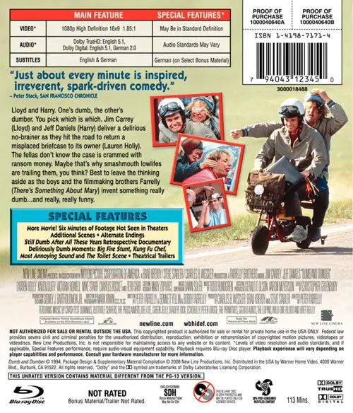 On the supplementals front, both titles appear to include identical extras as found on the previously released DVD versions. Dumb and Dumber will include an additional 6 minutes of footage not included in the theatrical cut that pushes it into unrated territory.